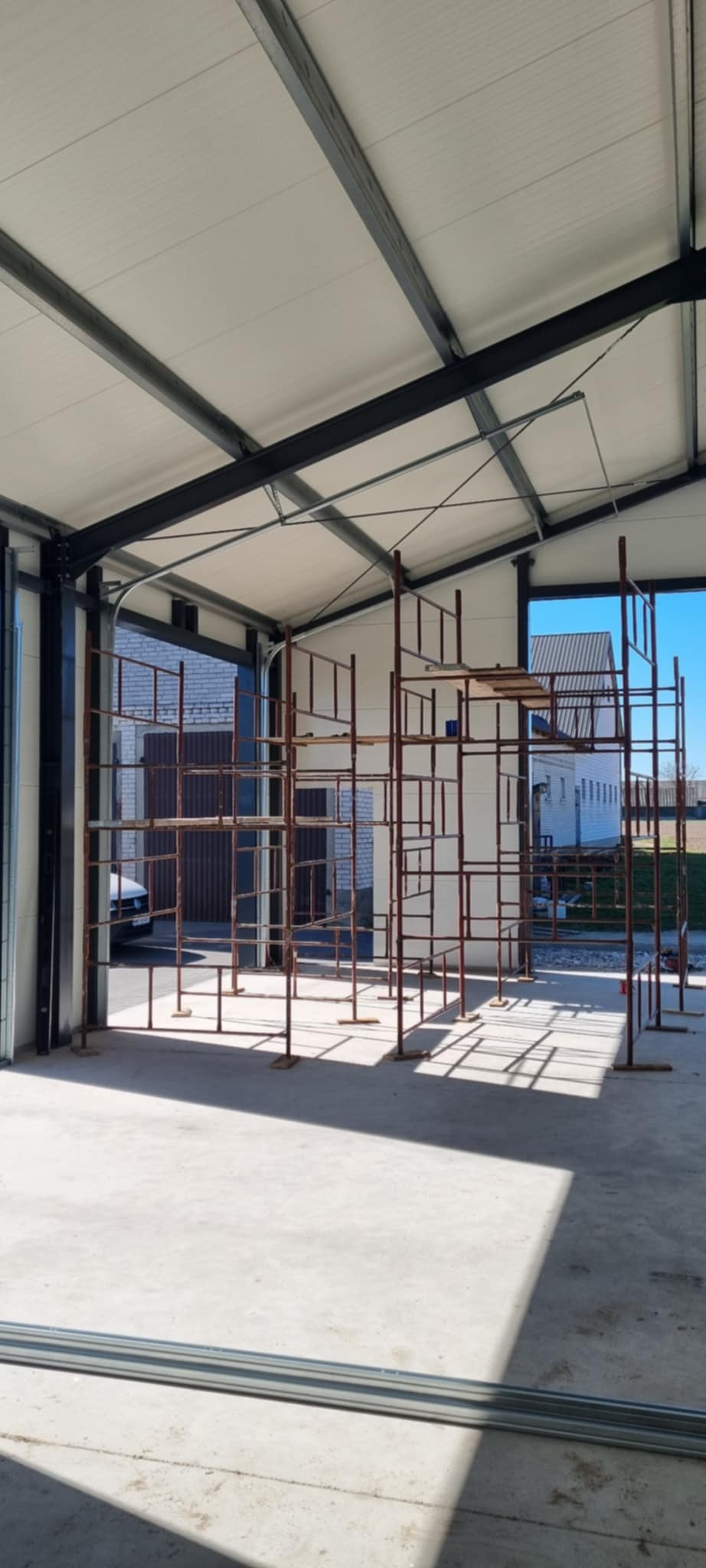 Brama NITUS była kluczowym elementem naszej najnowszej realizacji hali przemysłowej, w której połączyliśmy funkcjonalność i nowoczesne rozwiązania konstrukcyjne. Zastosowanie bramy z prowadzeniem pod kątem 20° pozwoliło w pełni wykorzystać przestrzeń użytkową budynku, co ma ogromne znaczenie w codziennym funkcjonowaniu obiektu. Całość uzupełniły płyty warstwowe Balex Metal z wypełnieniem PIR, które zapewniają doskonałą izolację termiczną, trwałość oraz estetyczny wygląd. Dzięki temu inwestycja nie tylko spełnia wymagania użytkowe, ale także wyróżnia się solidnym wykonaniem i energooszczędnością.
