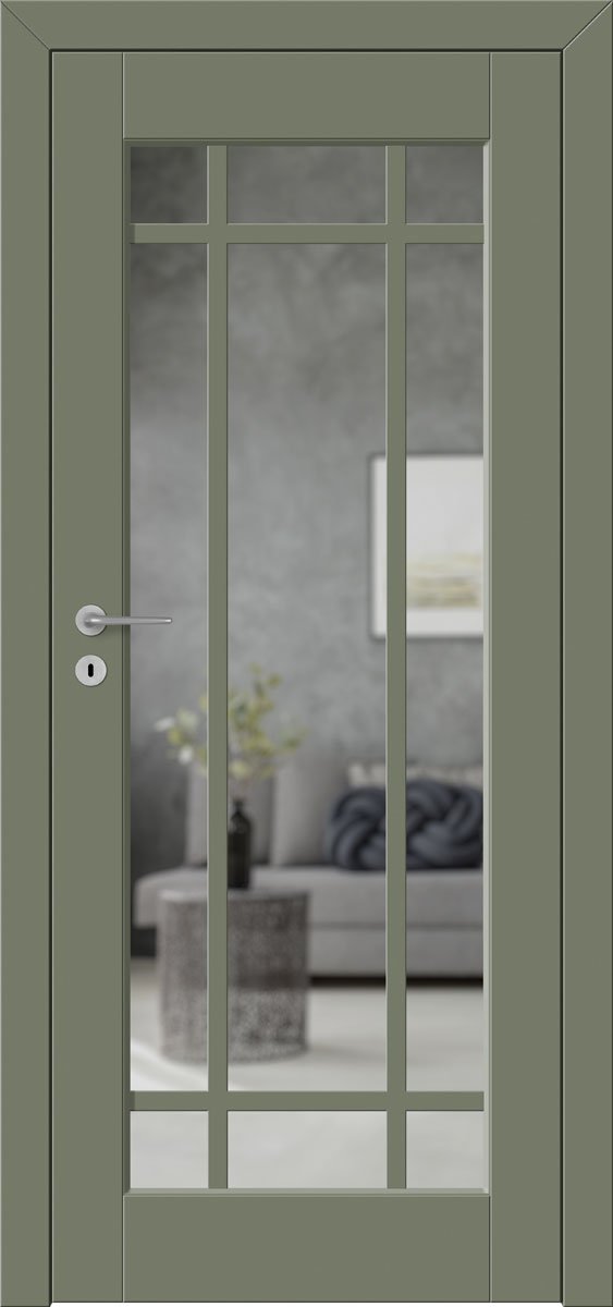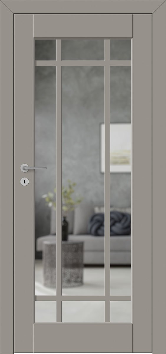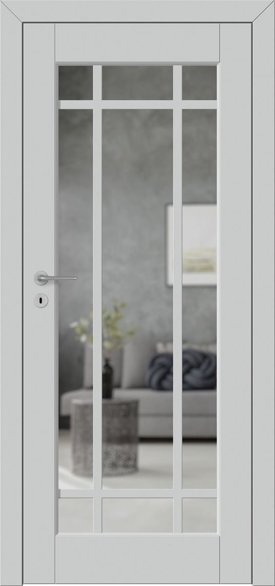 Model Barański Baron B.4 wyróżnia się szeroką ramą oraz precyzyjnym wykończeniem, co podkreśla wysoką jakość wykonania. Drzwi dostępne są w eleganckich kolorach, takich jak szarość RAL 7030, uniwersalna biel RAL 9016 czy modny granat RAL 5008. Taka paleta barw pozwala w pełni dopasować skrzydło do charakteru aranżacji – zarówno nowoczesnych, jak i tradycyjnych.