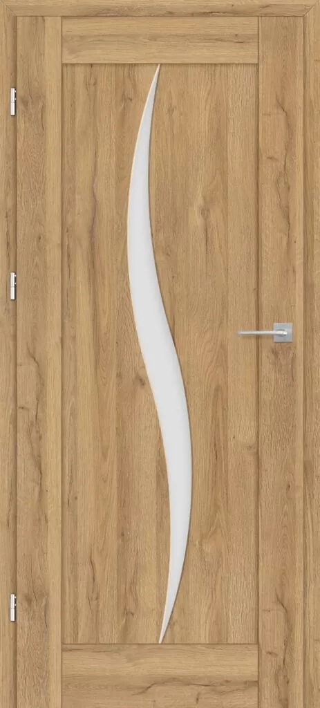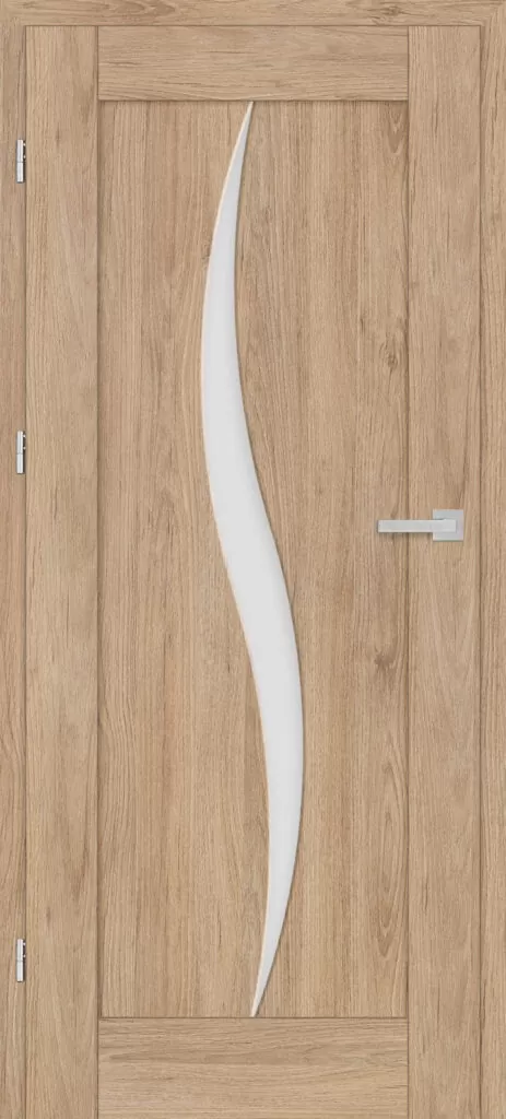 Drzwi Aralia 1 standardowo wyposażone są w szybę decormat mleczną o grubości 4 mm, zapewniającą delikatną transmisję światła i prywatność. Opcjonalnie dostępne jest bezpieczne szkło klejone VSG 221, również w wersji mlecznej, gładkiej z obu stron. Możesz także zmienić stronę szklenia na rewers, co pozwala idealnie dopasować drzwi do aranżacji i układu wnętrza.