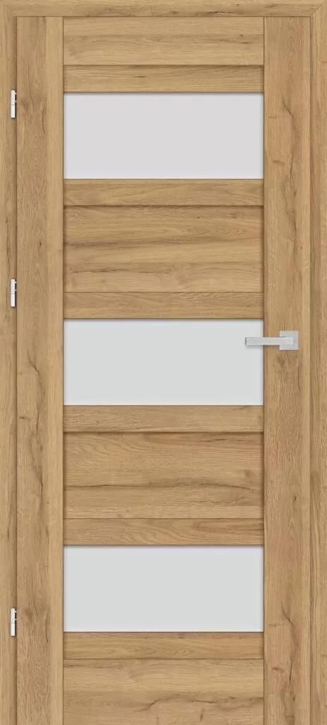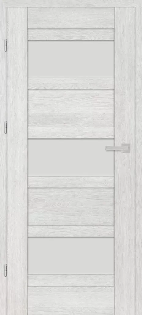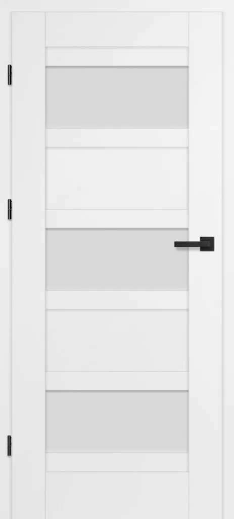 Drzwi Erkado Azalia 6 to twórcze spojrzenie na klasykę, z przeszkleniem obejmującym 3 z 5 płycin. Nietypowe rozmieszczenie szyb w skrajnych polach i pośrodku nadaje modelowi nowoczesny wyraz. Drzwi doskonale łączą doświetlenie wnętrza z ochroną prywatności, dzięki czemu sprawdzą się idealnie w sypialni, łazience czy toalecie.
