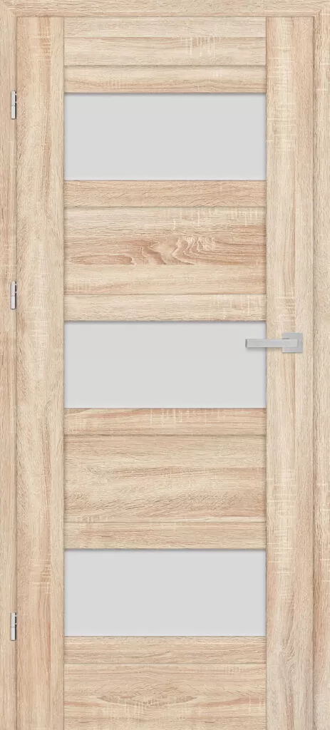 Konstrukcja drzwi dostępna jest w wersjach przylgowej i bezprzylgowej, co daje swobodę aranżacyjną i montażową. Bogata paleta dekorów obejmuje popularne wzory drewniane, takie jak Dąb Greko, Sonoma Greko, Dąb Natur Premium i Sosna Szara, a także modne, nowe kolory: popielatą szarość, ciemną zieleń i granat. Dobór tych wykończeń uwzględnia obecne trendy, zapewniając jednocześnie ponadczasowy charakter drzwi.