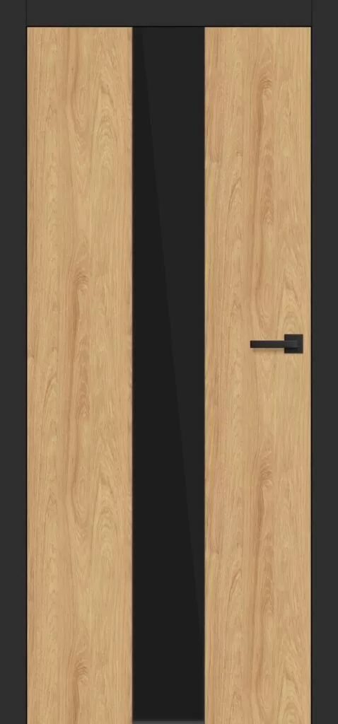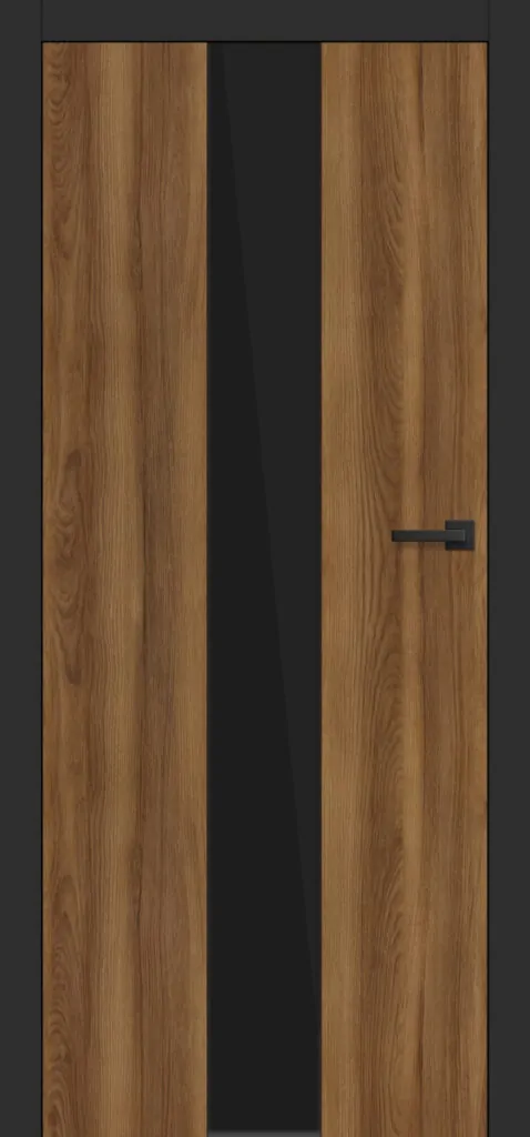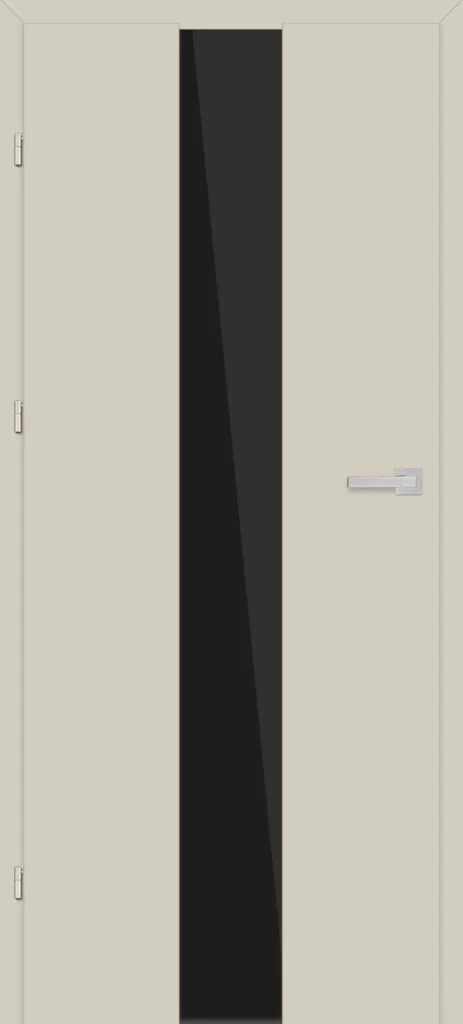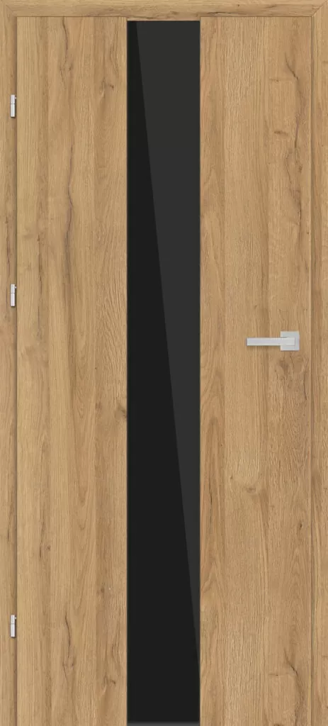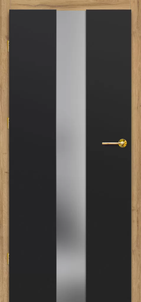 W standardzie drzwi wyposażono w hartowane szkło o grubości 8 mm, a za dopłatą dostępne jest szkło bezpieczne VSG/ESG 441. Zamek magnetyczny i wysokiej klasy zawiasy czopowe zapewniają komfort użytkowania oraz płynną pracę skrzydła. Model można dodatkowo uzupełnić o czarne obrzeża, korony lub panele poszerzające, co nada całości luksusowy wygląd.