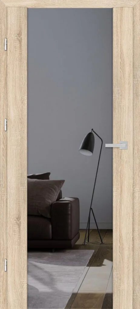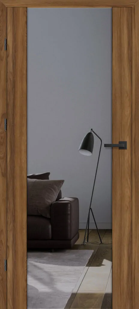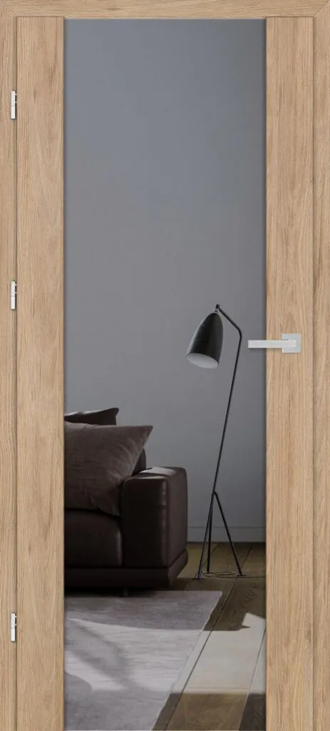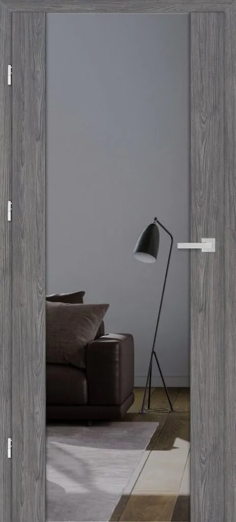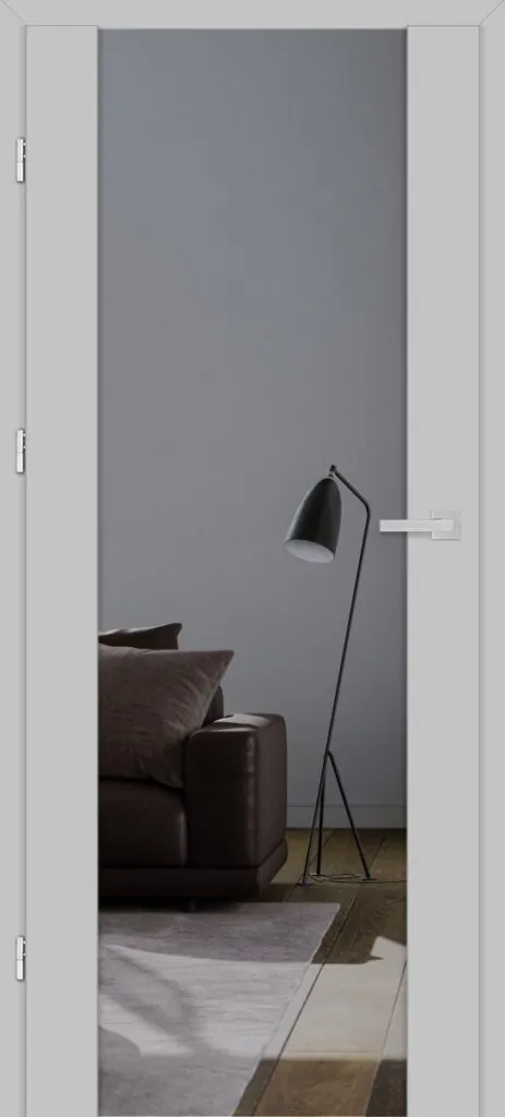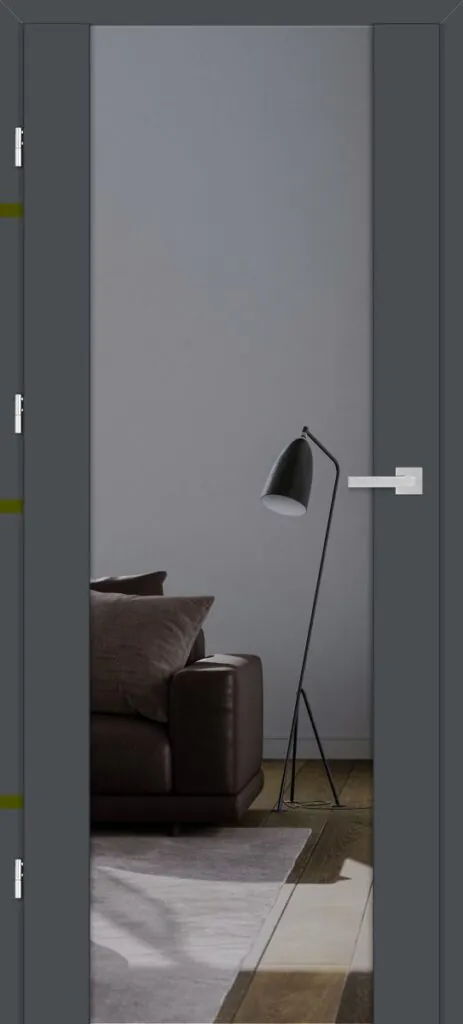 Wariant Erkado Fragi 17 charakteryzuje się dekoracyjnym, dymionym przeszkleniem w kolorze grafitowym. Dzięki temu wybarwieniu szyba subtelnie przepuszcza światło, tworząc przyjemną i kameralną atmosferę. Kolorystyka drzwi idealnie wpisuje się w nowoczesne trendy wnętrzarskie, łącząc elegancję czerni z ponadczasową prostotą formy.