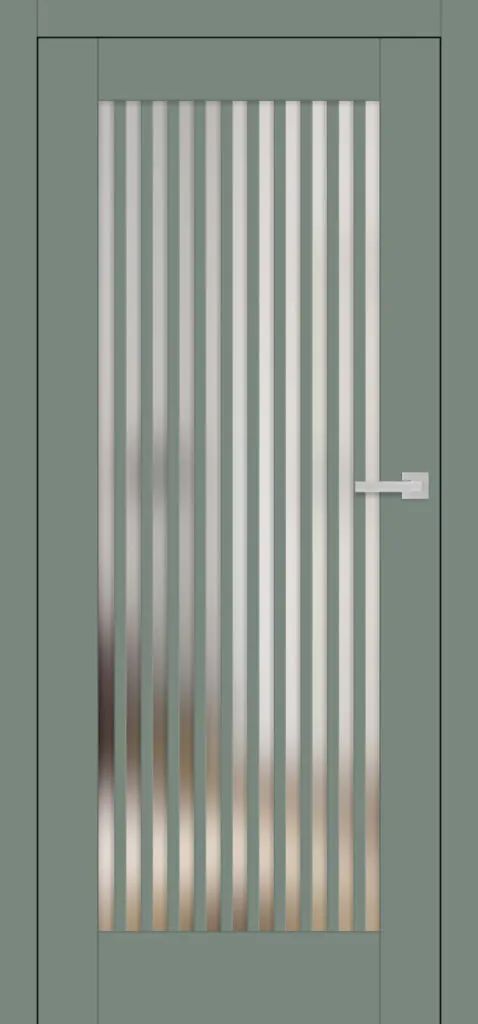 Dwustronny szpros naklejany na szybę o szerokości 25 mm pozwala uzyskać efekt stylizowanych, lekkich drzwi. Pionowe szprosy mają wysokość 12 mm, a poziome 8 mm, co nadaje całości elegancki, lekko skandynawski charakter. Opcjonalnie można wybrać czarny kolor szprosu w dekorze ST CPL, niezależnie od koloru skrzydła, podkreślając industrialny lub loftowy efekt.