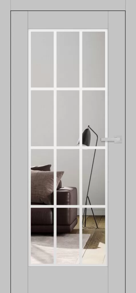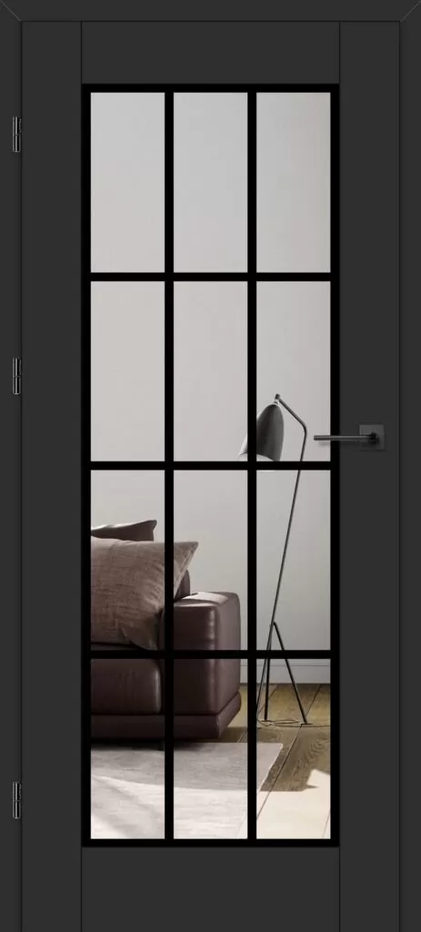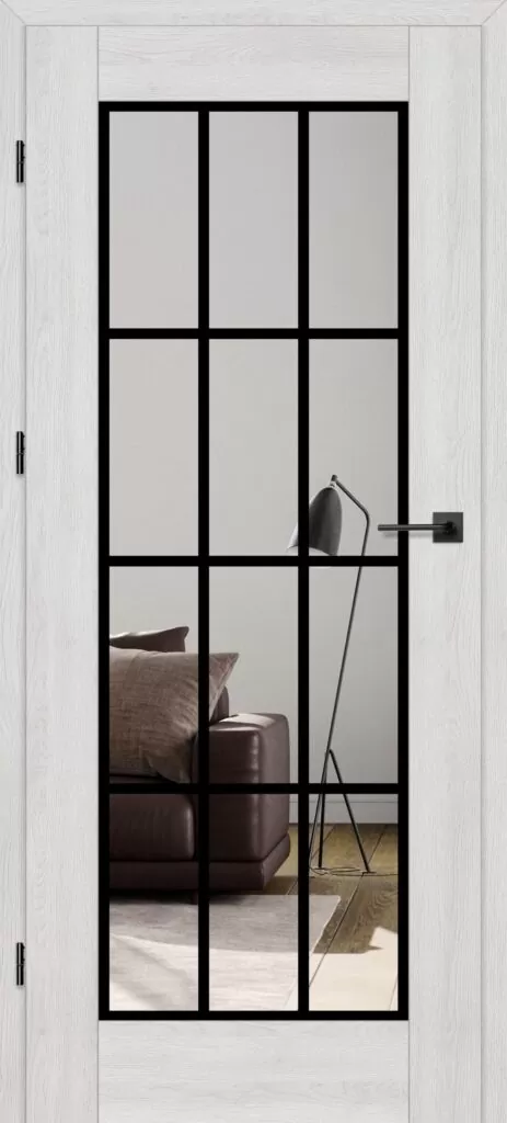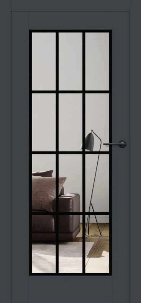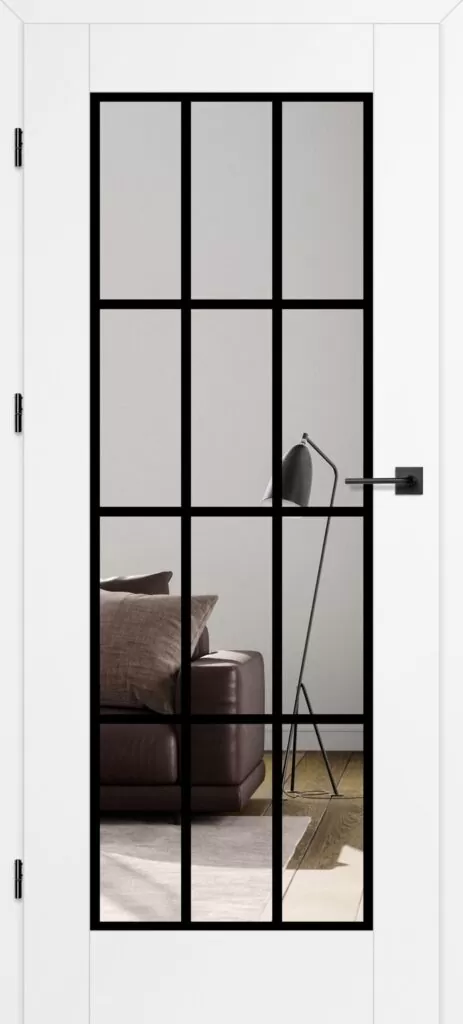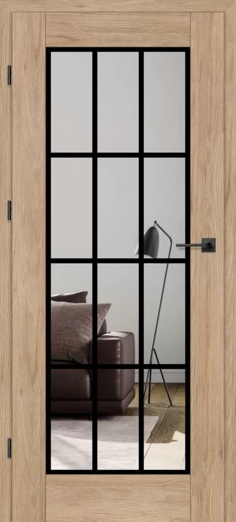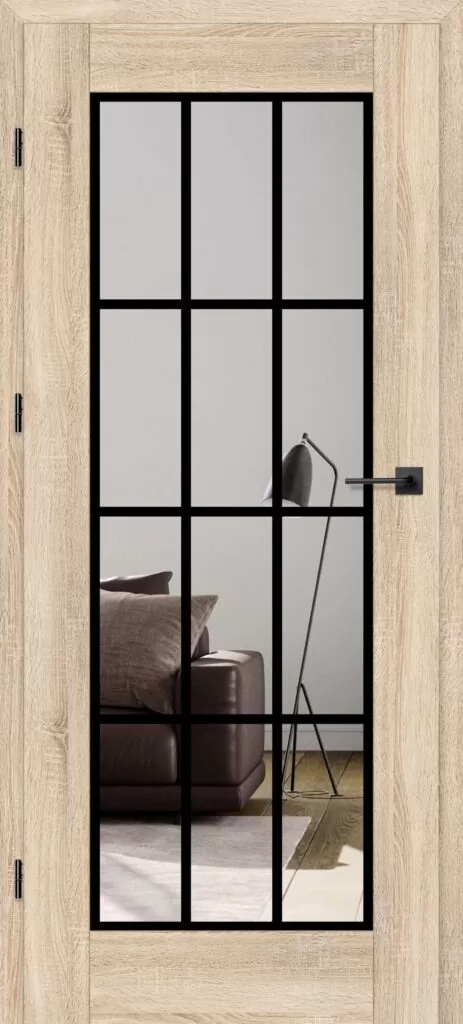 Drzwi Erkado Miskant 3 charakteryzują się dużych rozmiarów przeźroczystą szybą z loftowym szprosem, dzielącym taflę na 12 drobnych kwater. Model łączy praktyczność z wyjątkowymi walorami dekoracyjnymi, rozświetlając i optycznie powiększając wnętrze. Miskant 3 to idealny wybór dla aranżacji w modnym stylu industrialnym, dodając charakteru każdemu pomieszczeniu.
